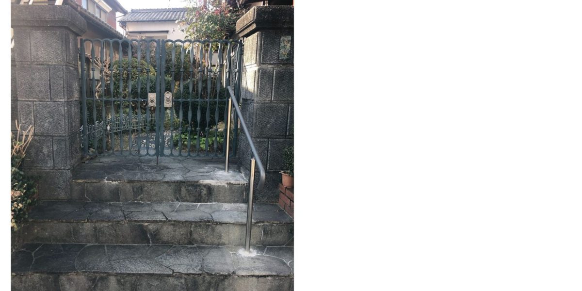 古くからのお付き合いになりますS様は、まだまだとてもお元気ですがご家族の勧めもあって、そろそろ外階段に手すりを取り付けてほしいというお話でした。 車通りもある道路沿いの外階段なので万が一転ばれて道路に転げ落ちたりでもしたら一大事です。 安全に階段を乗り降りしていただけるようしっかり取り付けました。