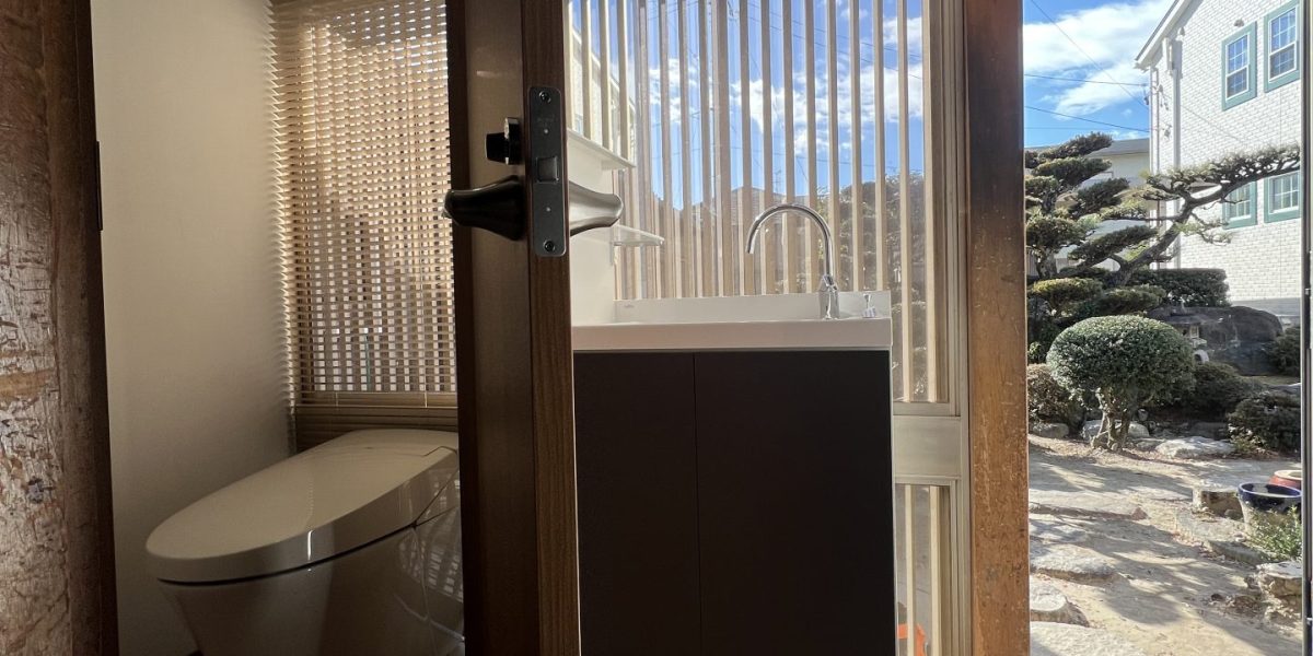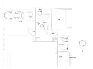 T様邸ではトイレと浴室は1度勝手口から外に出て庭を通り通路から入いる、昔の大きな旧家にはよくあったタイプのお家でした。それはもちろん、冬の寒い日でも雨でも雪でもトイレとお風呂に入るには敷地内ですが1度外に出なくてはいけません。