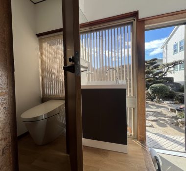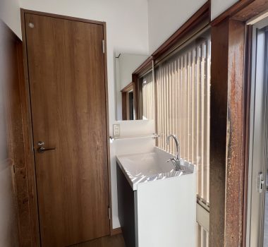 なんとかなりませんか?とご相談いただき、浴室は間取りの問題もあるのでとりあえず今回ははそんなにスペースを取らないトイレだけでも洗面室に置くことをご提案致しました。