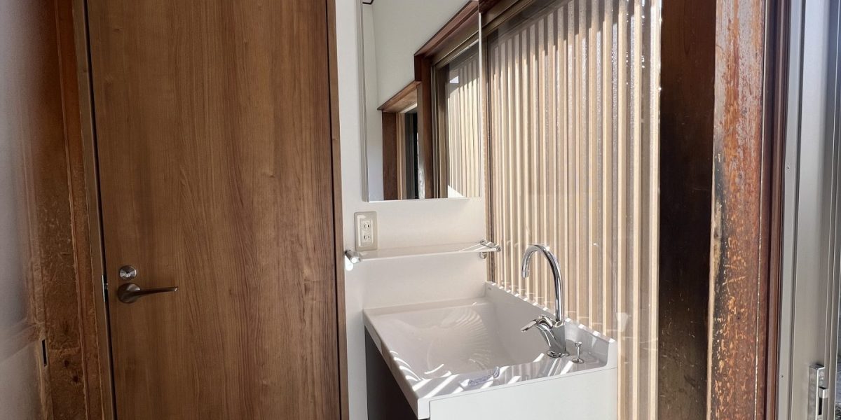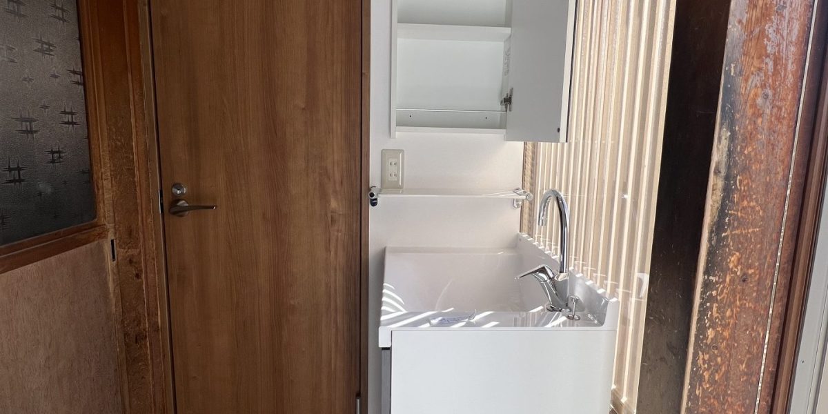施工前 この洗面スペースにトイレと新しい洗面台を