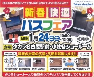 新春快適バスフェア atタカラスタンダード小牧ショールーム 2026.01.24(Sat) 10:00~17:00